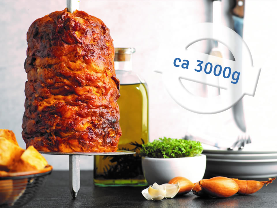 Kross gebraten und lecker duftend – Fleisch auf dem Spieß hat noch immer etwas Urwüchsiges. Gyros ist längst aus der deutschen Küche nicht mehr wegzudenken. Dem tragen wir Rechnung mit klassischen Gyros-Drehspießen aus saftigem, mariniertem Schweinefleisch, die sorgfältig von Hand gesteckt werden.