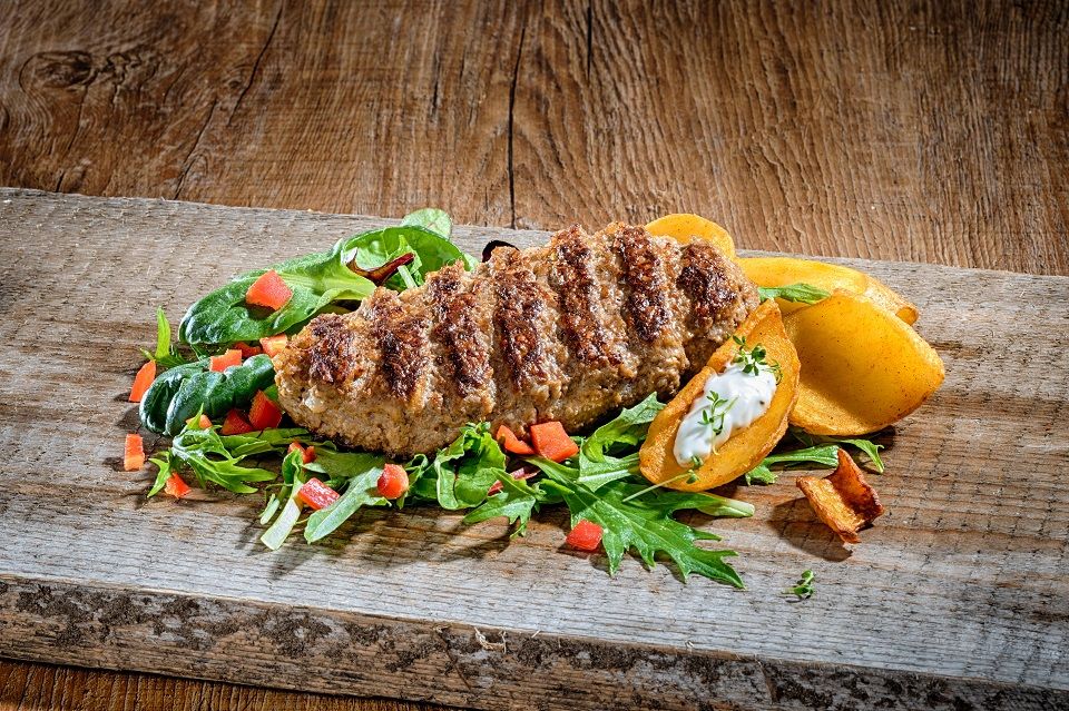 Saftiges Schweinefleisch aus der eigenen Zerlegung trifft mit frischen Zwiebeln, etwas Paniermehl und einer tollen Kräuter- und Gewürzmischung den klassischen Geschmack auf den Punkt. Passt in die Stulle genauso gut wie zu Wirsing und Bratkartoffeln.
